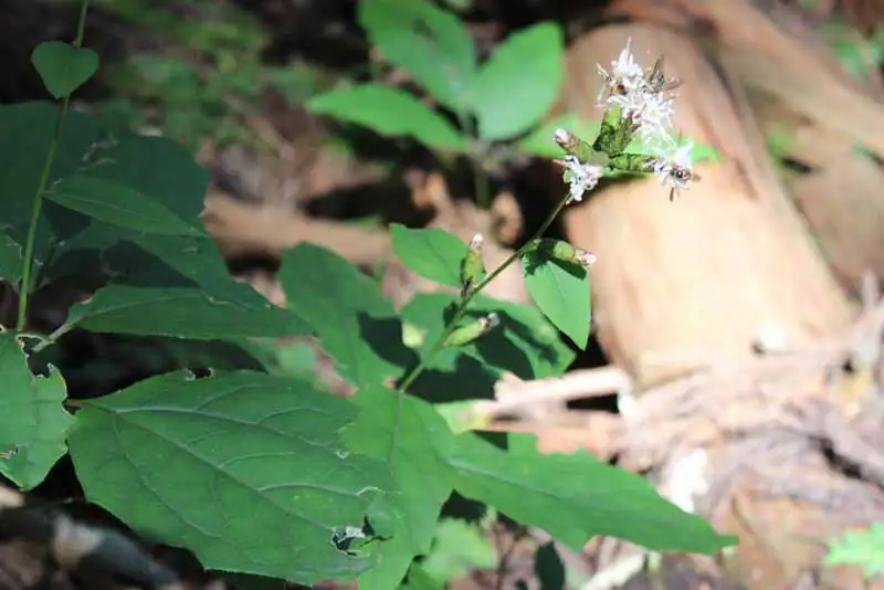 山地の木陰に咲く多年草。葉は互生し卵状長楕円形で縁に粗い歯牙があります。葉が柏の葉に似ているハグマとして名付けられました。
