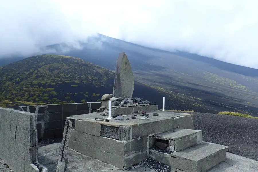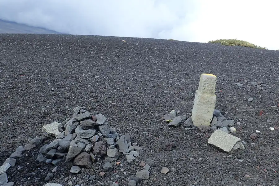 二ツ塚は宝永火口の東南に位置する寄生火山です。小さなピークに石祠と御料局点がある。