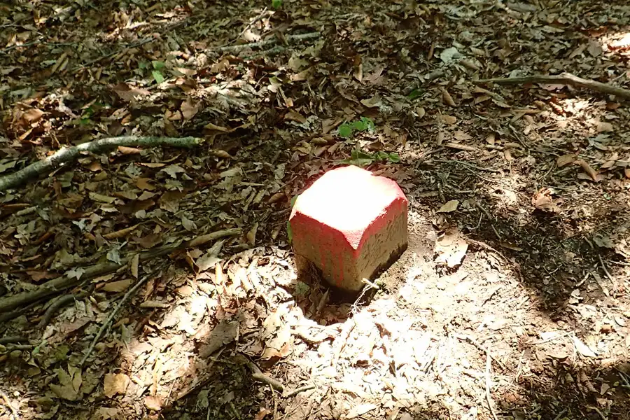 白くらの頭に頭を赤く塗られた御料局点があります。御料局境界点と刻まれているようです。