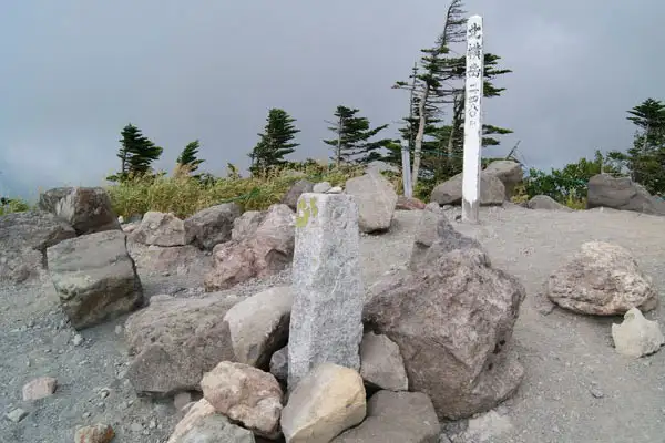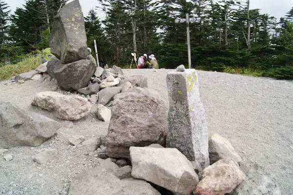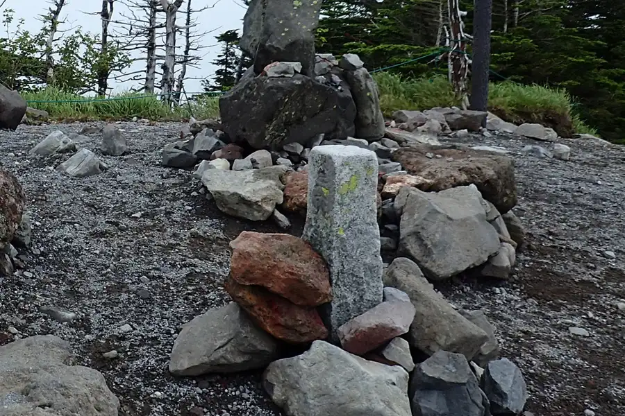 北横岳の北峰の上に宮標石がありました。石柱の裏面には界乙一六○と読めそうです。