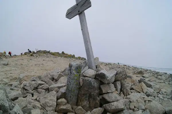 山頂近くのケルンに標石がありました。頭が丸い標石ですが石面は風化して文字も判りません。