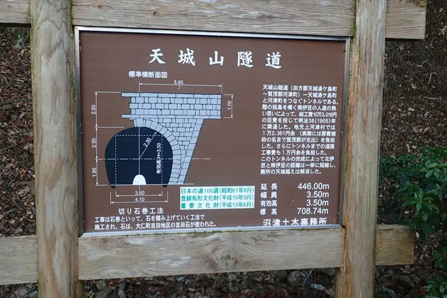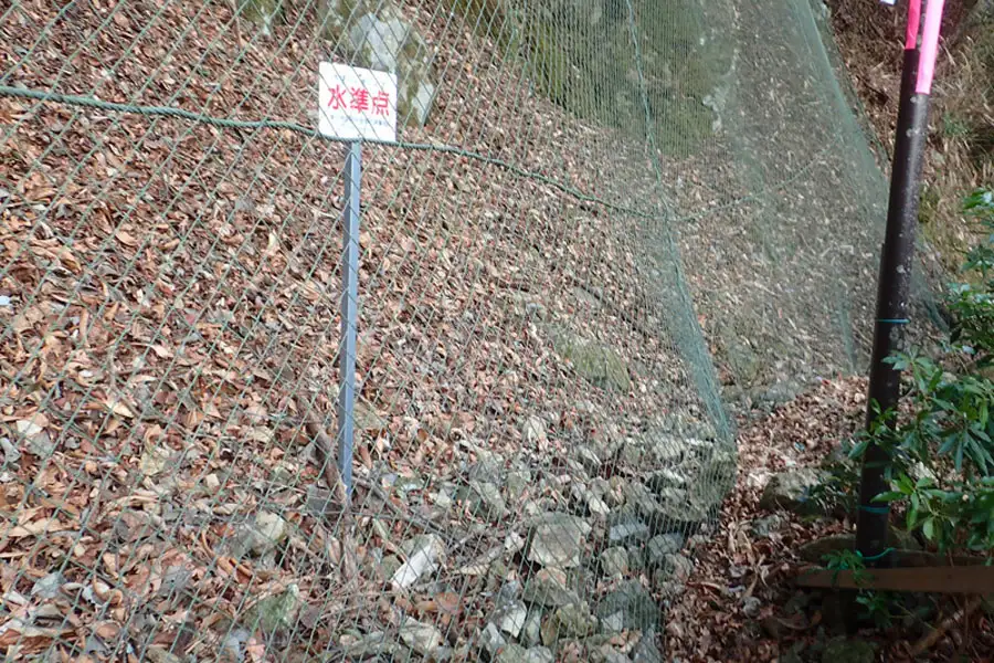 旧天城トンネル北側の入り口にある水準点、見出し標は見えるものの落石に埋まっています。