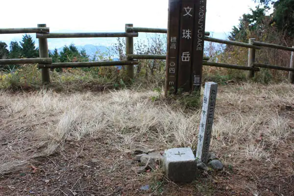 竜爪山は薬師岳と文珠岳からなる双耳峰です。三角点は清水港を見下ろす展望のよい文珠岳の頂にあります。
