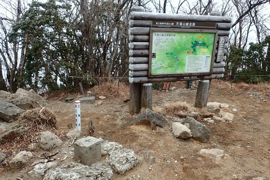 万三郎岳は赤城山縦走路上の頂です。広い山頂には赤城山縦走路の案内板と三角点があります。上面舗装は壊れかけていました。