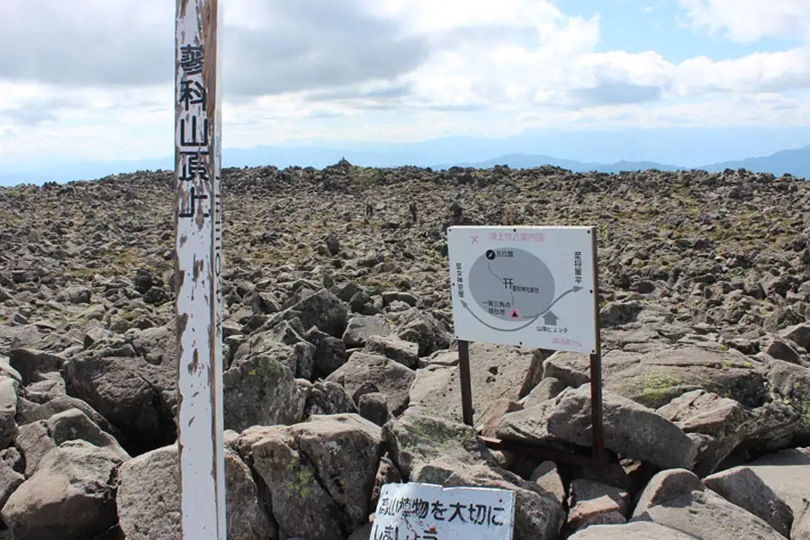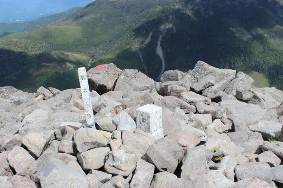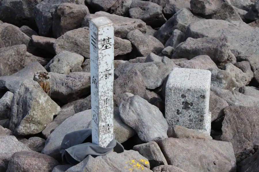 蓼科山は八ヶ岳連峰北端の山です。ゴロゴロと岩が転がる広い山頂に山頂標識とともに三角点がありました。