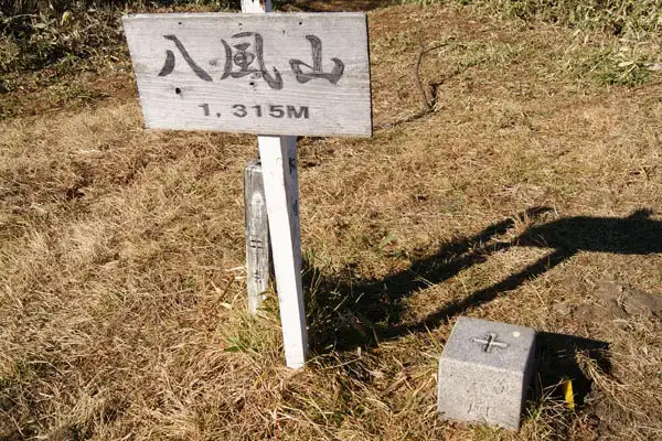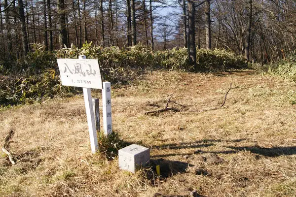 広く開けた山頂に1等三角点があります。北東側の展望が開け軽井沢の別荘地、その奥に浅間山がそびえていました。