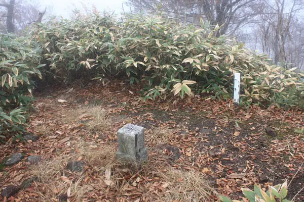 上蒜山から三角点峰へは深い笹藪に覆われた道をたどります。あまり人は入っていないようですが三角点周辺は刈り込まれています。