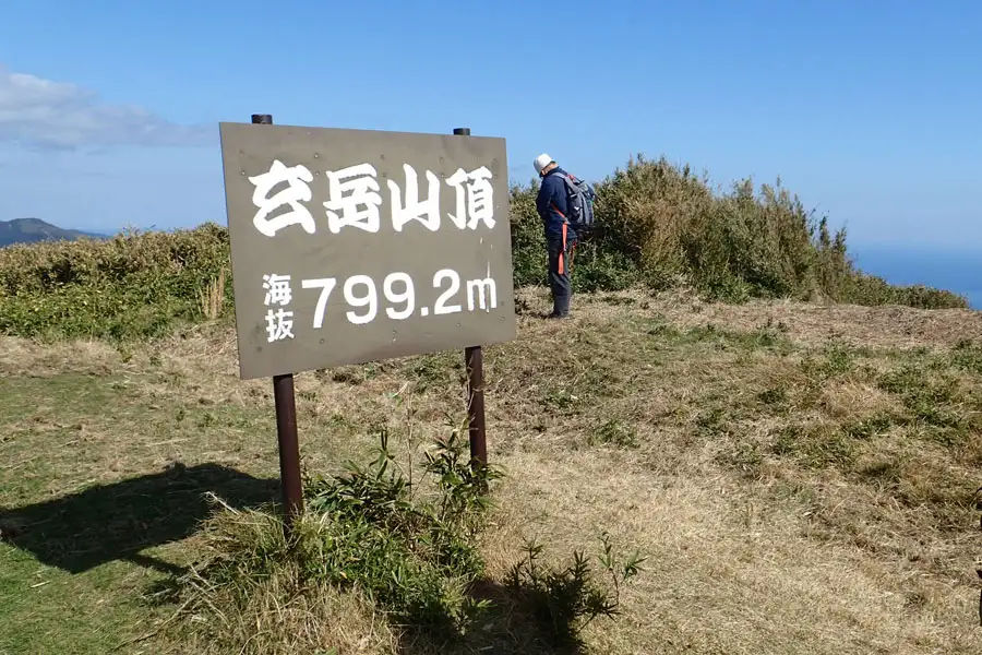 玄岳は伊豆スカイラインの通る稜線上の頂です。笹に覆われた山頂に山頂標識と三角点があります。