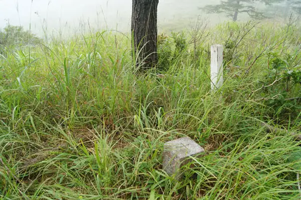 月見石近くの小さなコブの上に三角点があります。古い地形図ではコブの上に登山道があったようですが今は巻き道をたどるようになっています。
