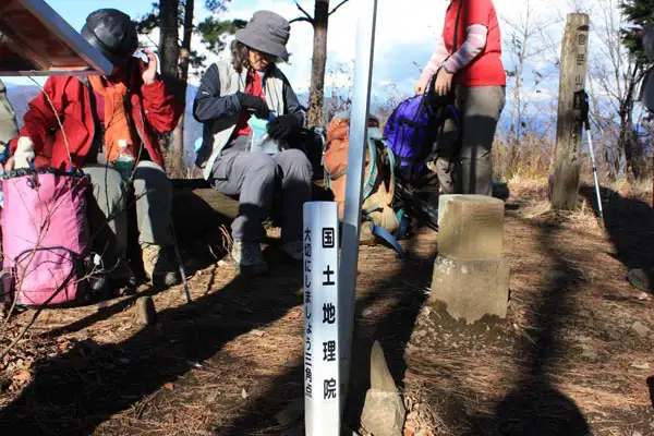 倉岳山の山頂は木々が伐採され富士山や扇山などが見渡せます。山頂広場の真ん中に2等三角点がありました。