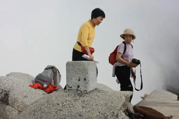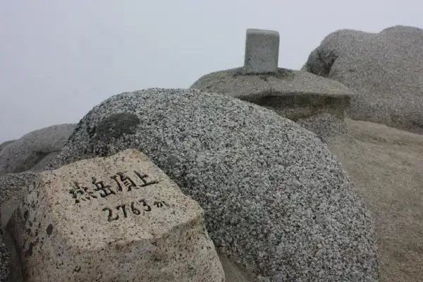 燕山荘からお花畑の稜線を登ると燕岳の山頂です。岩場の上には燕岳山頂と刻まれた岩と三角点がありました。