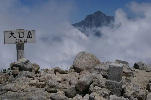 雷鳥沢から続く稜線上には奥大日岳、大日岳の頂があります。剣岳を見上げる大日岳の頂には山頂標識と三角点がありました。
