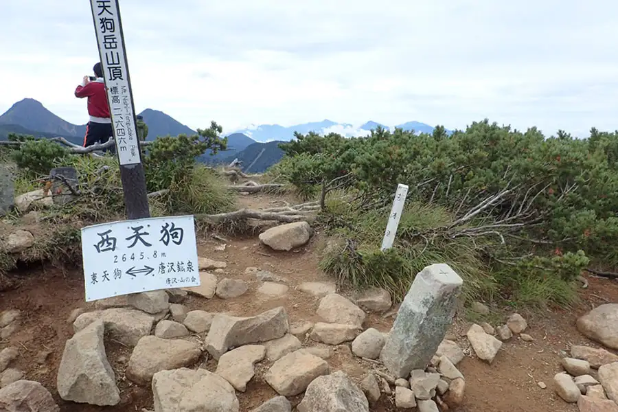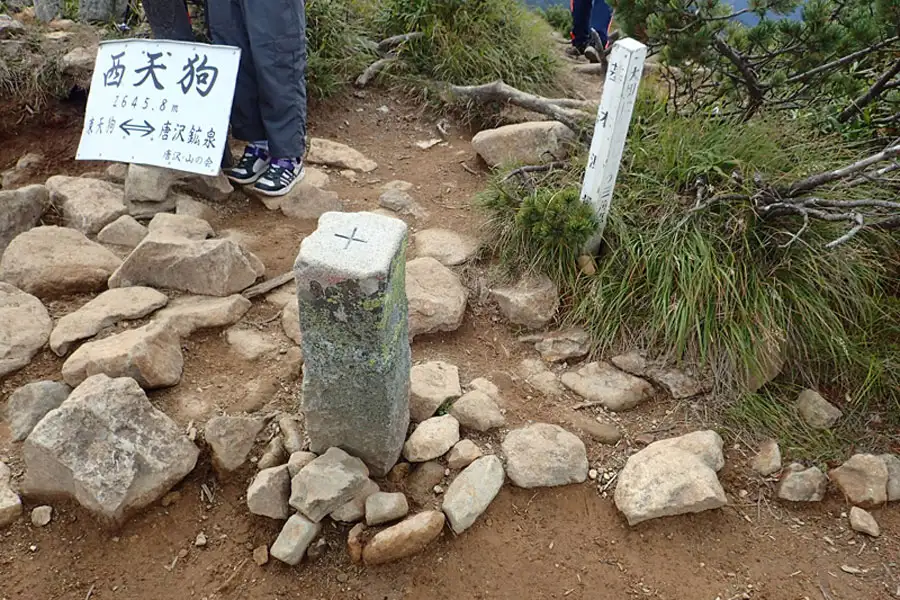 八ヶ岳の主稜線から僅かに外れた西天狗岳の山頂に三角点があります。八ヶ岳や南アルプスの山々を一望することができます。