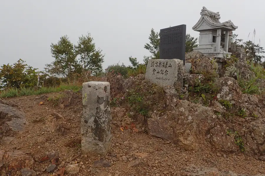 茂来山の山頂に2等三角点があります。傍には立派な石祠と浩宮殿下の登山記念碑がありました。