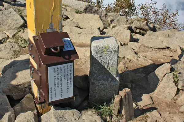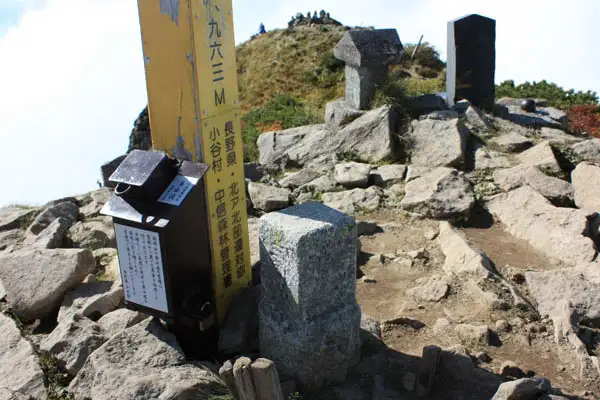 日本百名山の一つに数えられる雨飾山。荒菅沢の上に聳え立つ岩峰の上に2等三角点がありました。