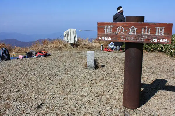 山頂は広い笹の頂です。目の前には大黒エビスノ頭から万太郎山への稜線が続いています。