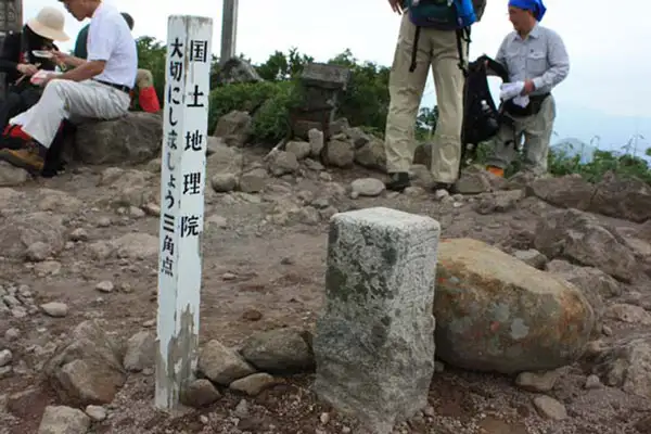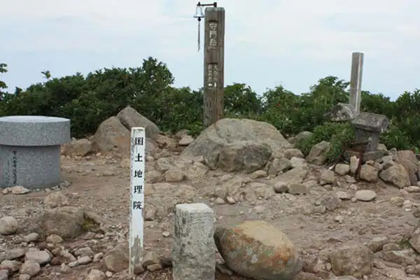大岳から明るい稜線をたどると守門岳の山頂です。山頂には標柱と三角点があります。