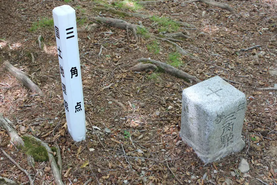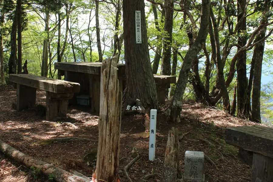 岩岳山の山頂に三角点があります。付近の稜線はアカヤシオやシロヤシオの咲くところです。