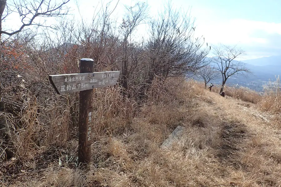 高指山は山中湖を見下ろす明るいカヤトの頂です。菰釣山から切通峠へと続く東海自然歩道が東る稜線です。登山道わきに三角点があります。