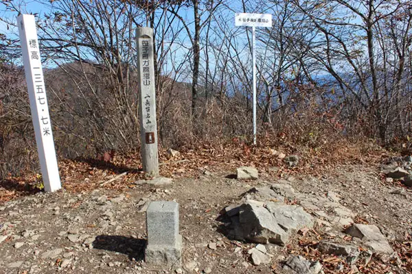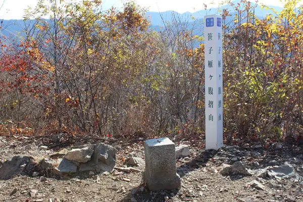 笹子峠から続く稜線上のピークです。狭い山頂は刈り開かれて展望が良いところです。山梨百名山の道標と三角点があります。
