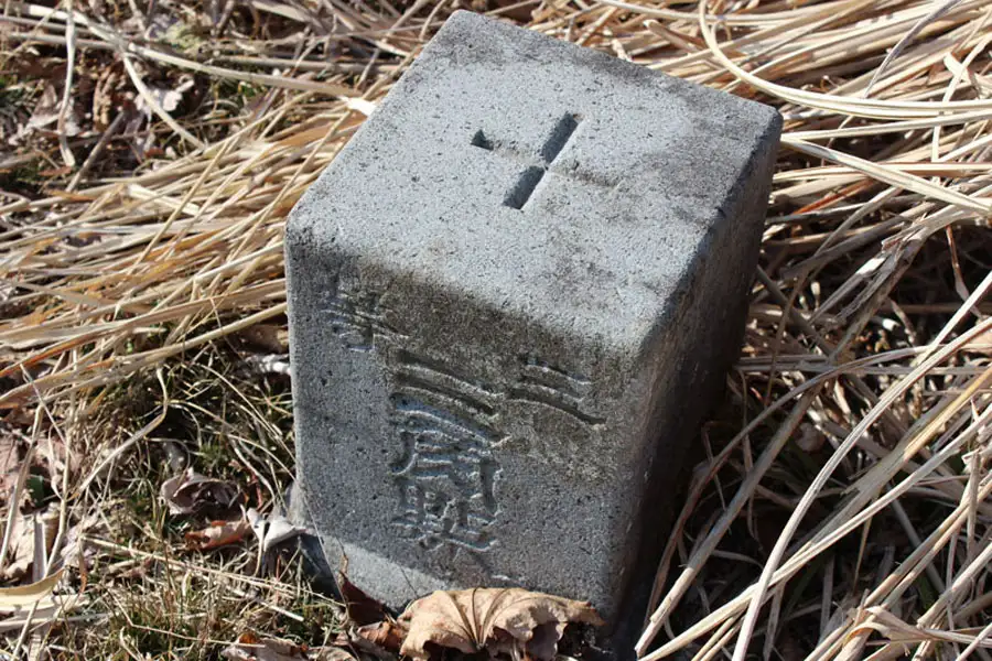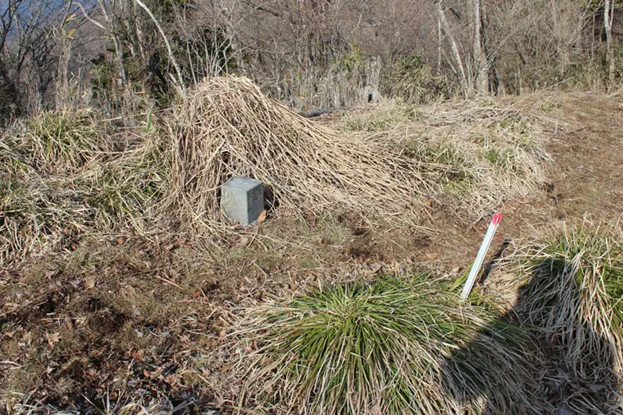 大室山から菰釣山へと続く稜線上に城ヶ尾峠があります。ここは東海道自然歩道が通るところです。登山道脇の草原に三角点がありました。