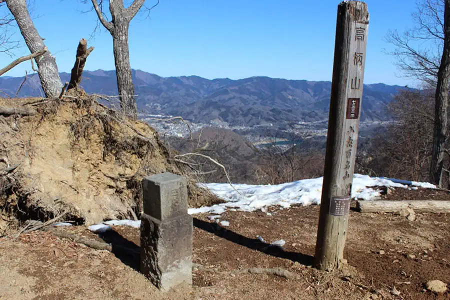 高柄山は中央線の沿線に小さく頭を連ねる稜線上の頂です。明るく開けた山頂からは中央線沿線の山々が一望できます。山頂には山梨百名山の道標と三角点がありました。