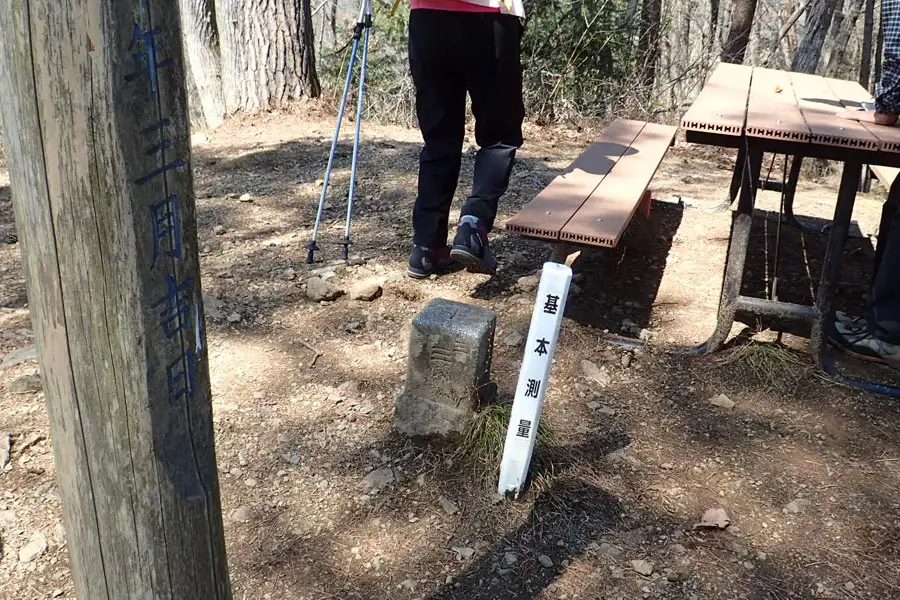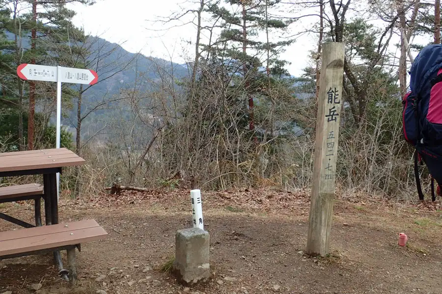 上野原の北に位置する稜線で八重山五感の森と呼ばれるハイキングコースが整備されています。ベンチや山頂標識が置かれた山頂に三角点があります。