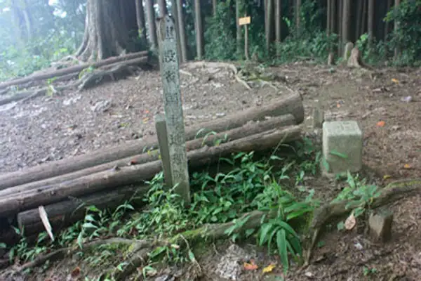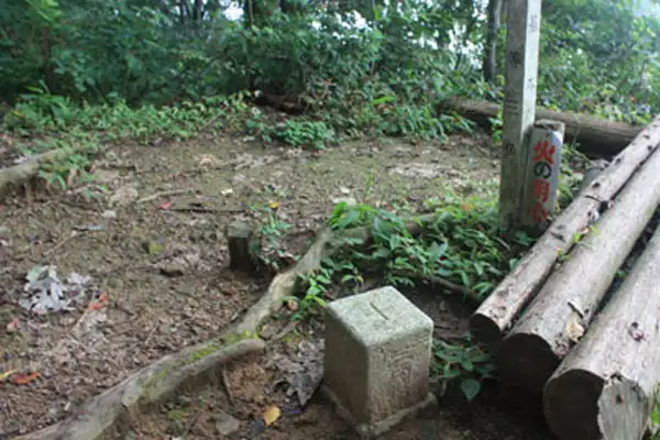 日の出山から吉野梅郷へと下っていく道が金毘羅神社の社に差し掛かるところ、左手の小尾根の頂が三室山です。杉林の踏み跡を登っていくと展望のない広場の中に三角点がありました。