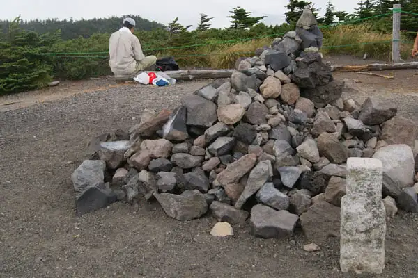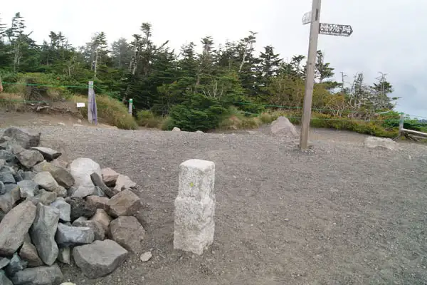 広く開けた北横岳の山頂は展望が開けるところです。ケルンの脇に三角点がありました。