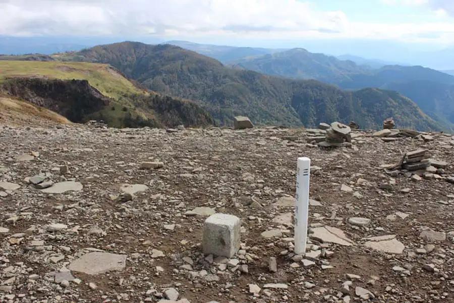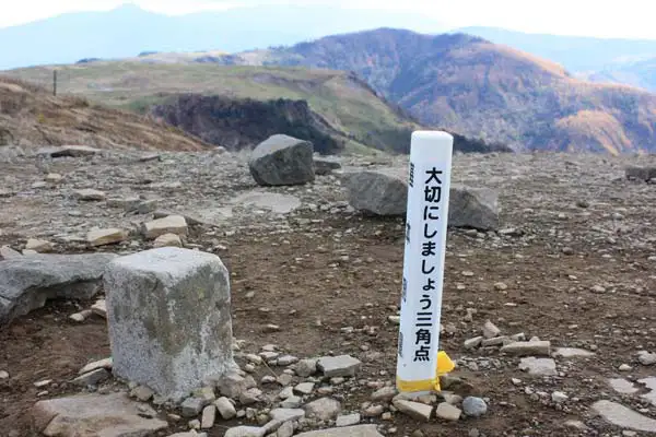 王ヶ頭の山頂は王ヶ頭ホテルの裏手にあります。テレビアンテナと大きなホテル、山岳信仰の匂いを残す石像や石祠が同居する山頂です。