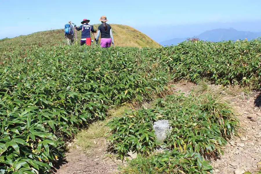巻機山の北東側への縦走路にあるなだらかなピーク、山頂に三角点が設置されていました。