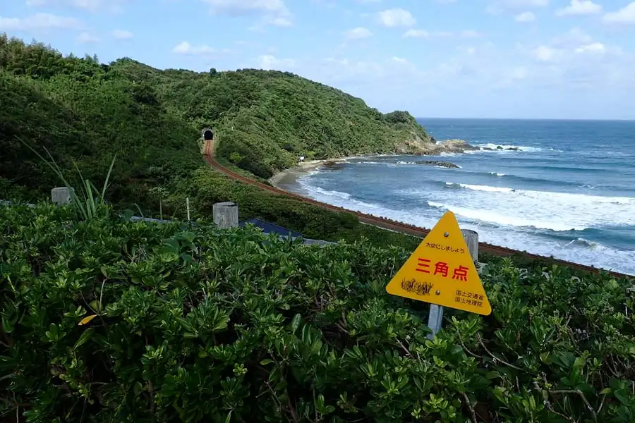 道の駅ゆうひパーク三隅からは日本海の海岸線が一望できます。植え込みの中に4等三角点がありました。