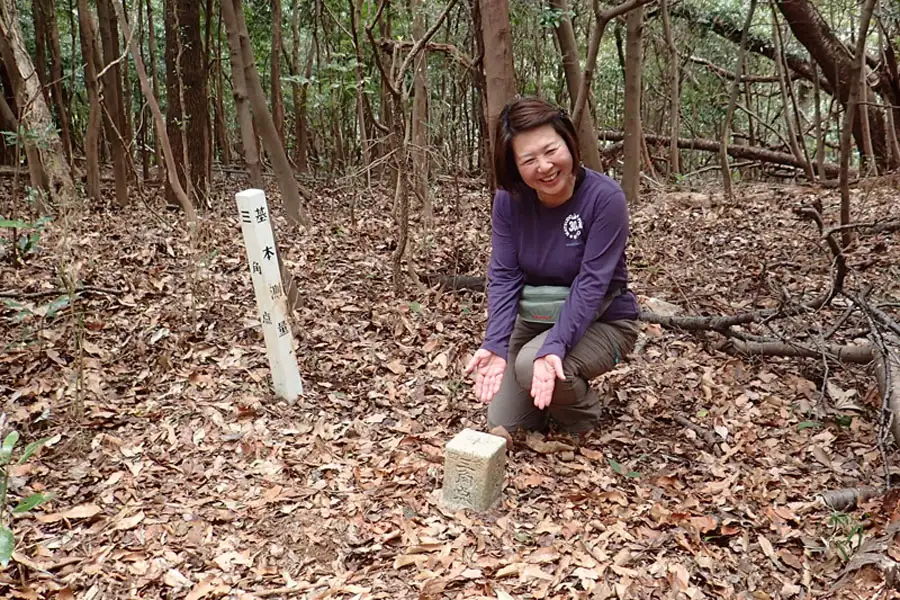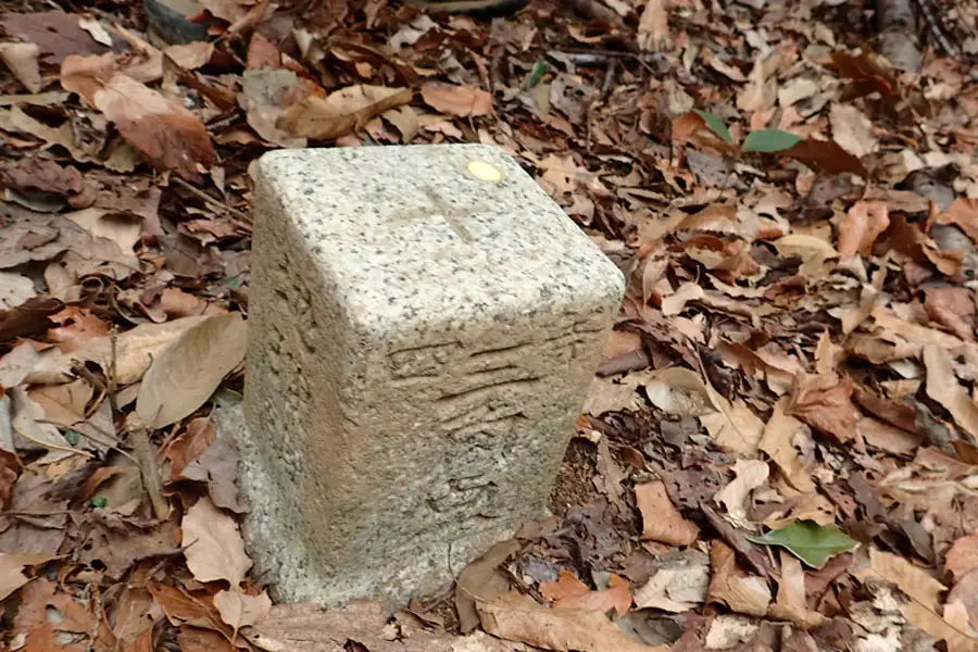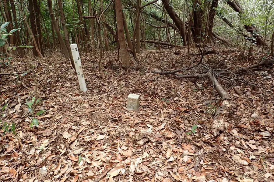 離山の山頂は石切り場から少し離れた雑木林の中にあります。木立に覆われ視界は全くありません。