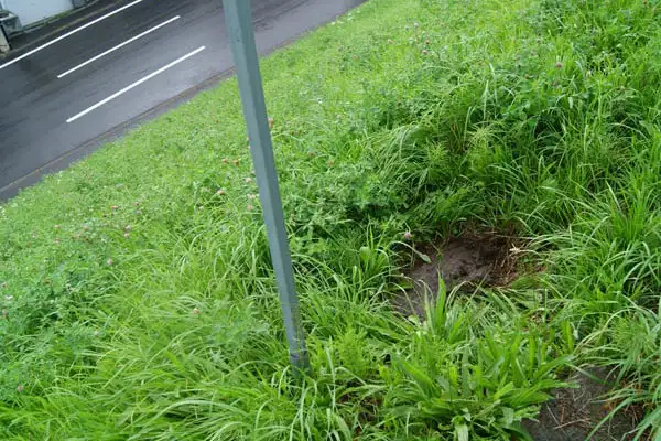 からまつ公園のラクビーグランドの外れに三角点の標柱がありました。コンクリート板の下に三角点があるようですが確認できませんでした。