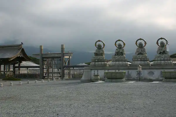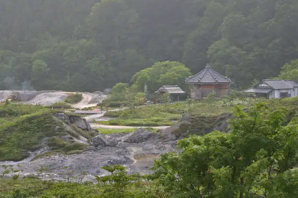 大きな山門をくぐると硫黄の匂いが鼻を衝きます。広い参道を進むとガイドブックにも紹介されている古滝の湯や冷抜の湯がありました。参拝者は無料で入浴できると言いますが、誰も入っていないお風呂は入りにくものです。
