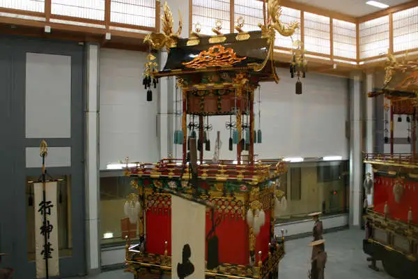 秋の高山祭は豪華絢爛な屋台が市中を引き廻すお祭りです。境内にある高山屋台会館では屋台を見ることができます。