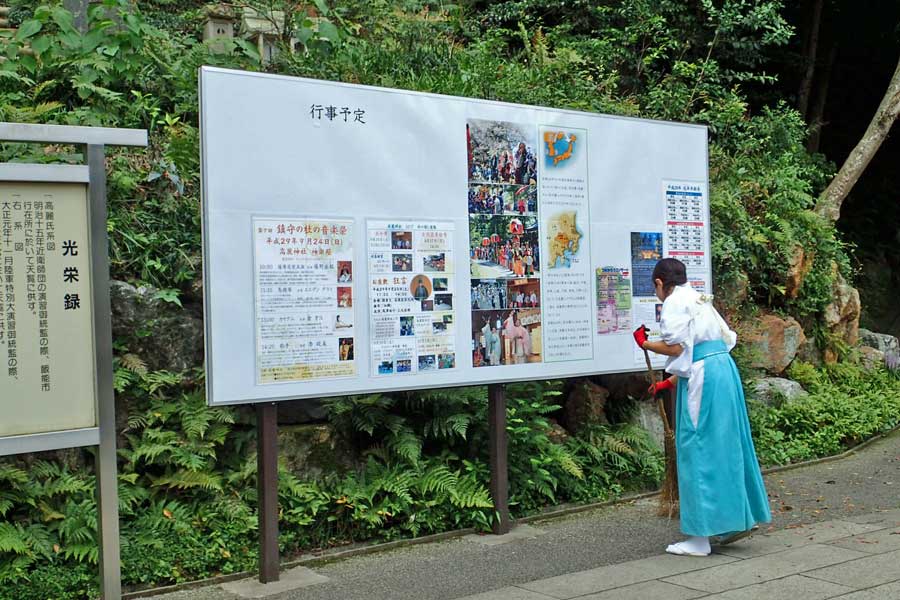 境内の案内板にはハングル、英文、日本語で高麗神社の案内がされていました。また参道には朝鮮王朝皇族御手植えと言う植樹があります。この神社は韓国との歴史のつながりが今も残っているところのようでした。