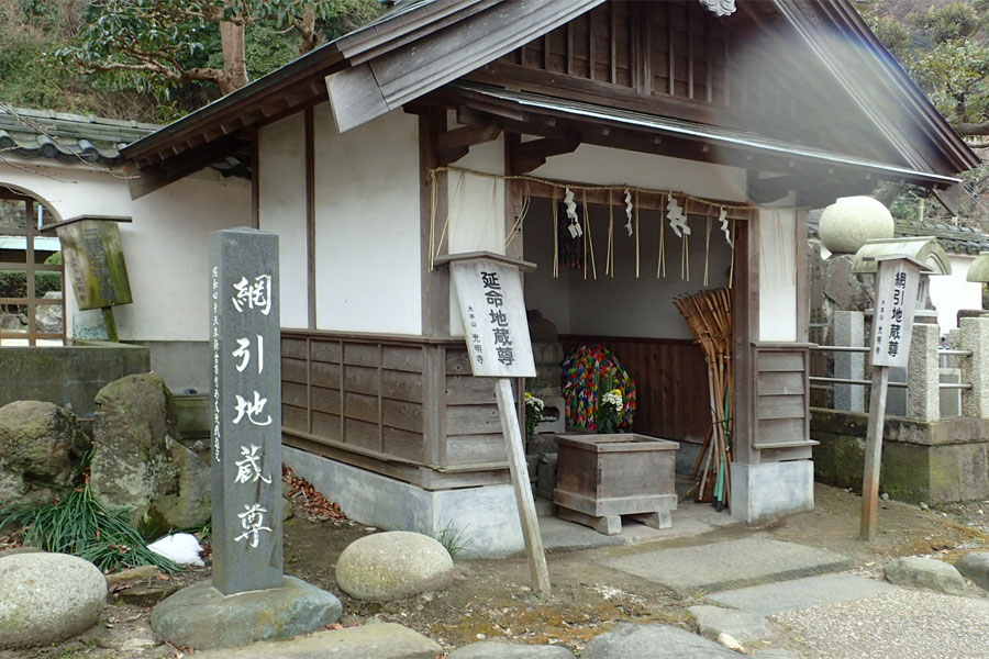 境内の網引寺地蔵は漁師の網に懸かり海から引き上げられたと伝えられるお地蔵さんです。背中の銘文に当寺第三世長老性正和尚が正和二年(1313)に供養した事が記され、冷泉為相によって造立されたとも伝えられています。