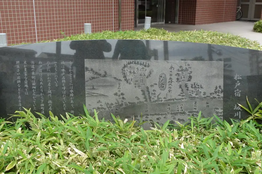 坂川の傍の植え込みに「松戸宿 坂川の歴史」の石碑があります。