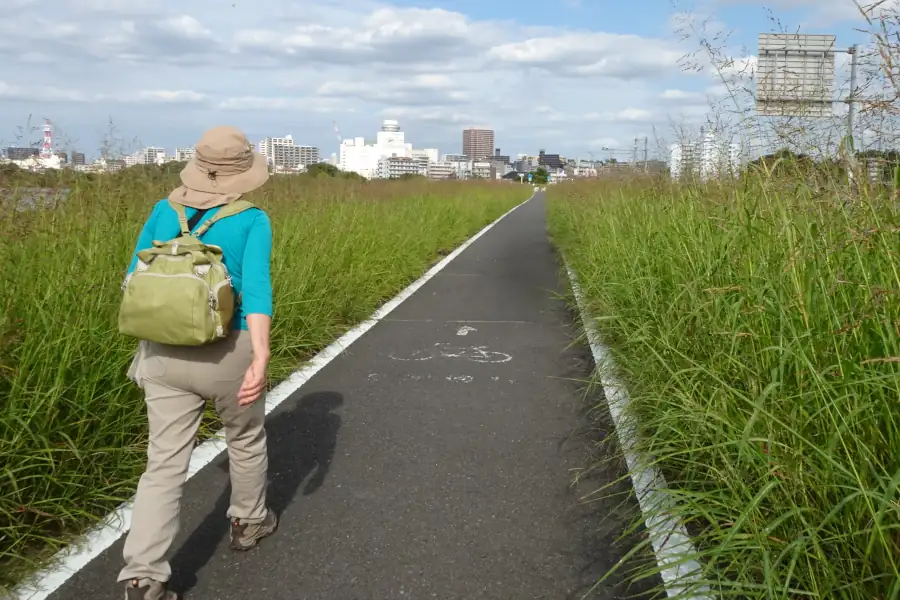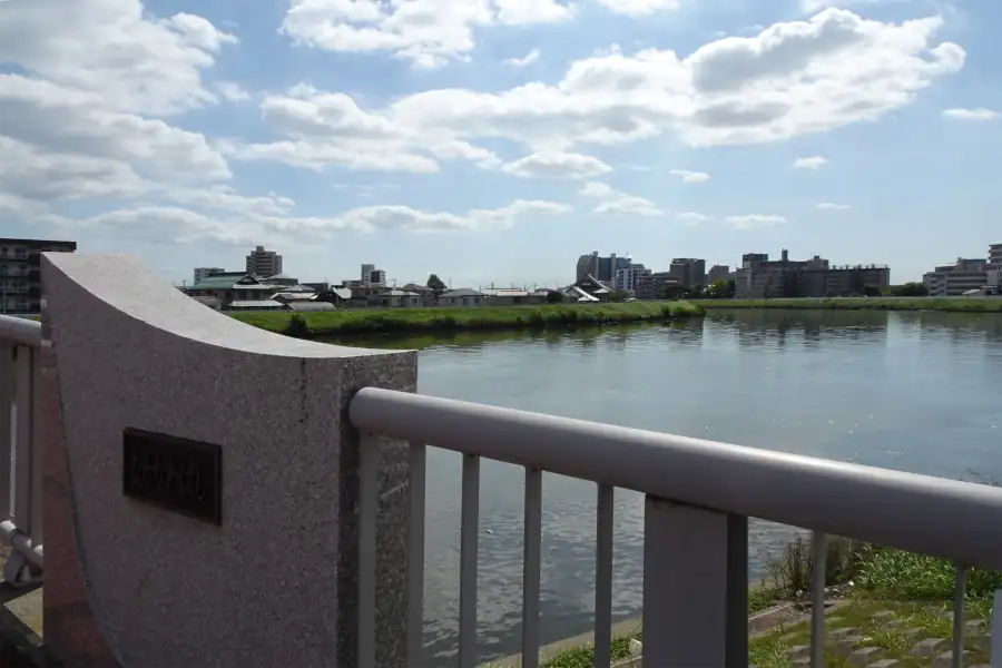 青砥駅から僅かに歩くと国道6号線、旧街道は6号線の沿った住宅地の中に続いていました。国道6号線を渡ると中川の河川敷に沿って続く遊歩道です。中川は埼玉県羽生市を源に綾瀬川を合わせ荒川として東京湾へと続く川です。低湿地帯と言うことから多くの洪水被害が発生したところと言います。