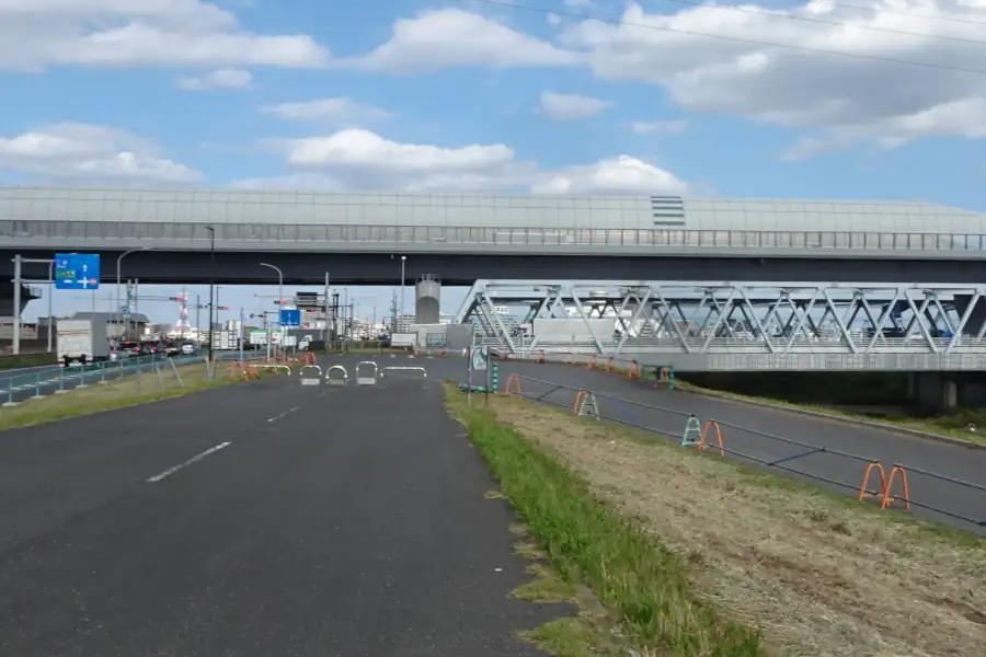 葛西橋で江戸川を渡ると千葉県、河川敷にはサイクリング道路があります。江戸川には松戸緊急用船着き場がありました。大きな災害が起きたときはここから物資の陸揚げが行われるところと言います。