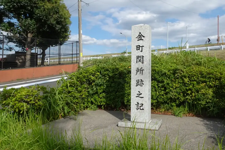 江戸川の河川敷をしばらく歩くと外環道の高架橋、東京をめぐる中央環状線C3が通るところです。河川敷の先には東京都の東金町ポンプ場があります。その傍には金町関所跡の碑が建っています。往時、松戸への渡船場はこの付近にあったと言います。
