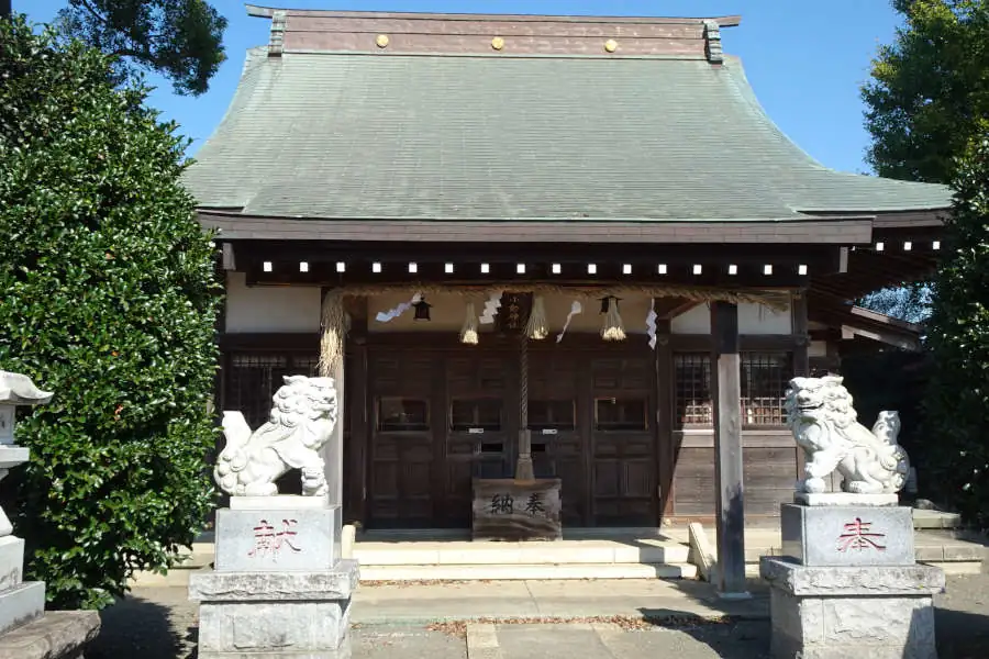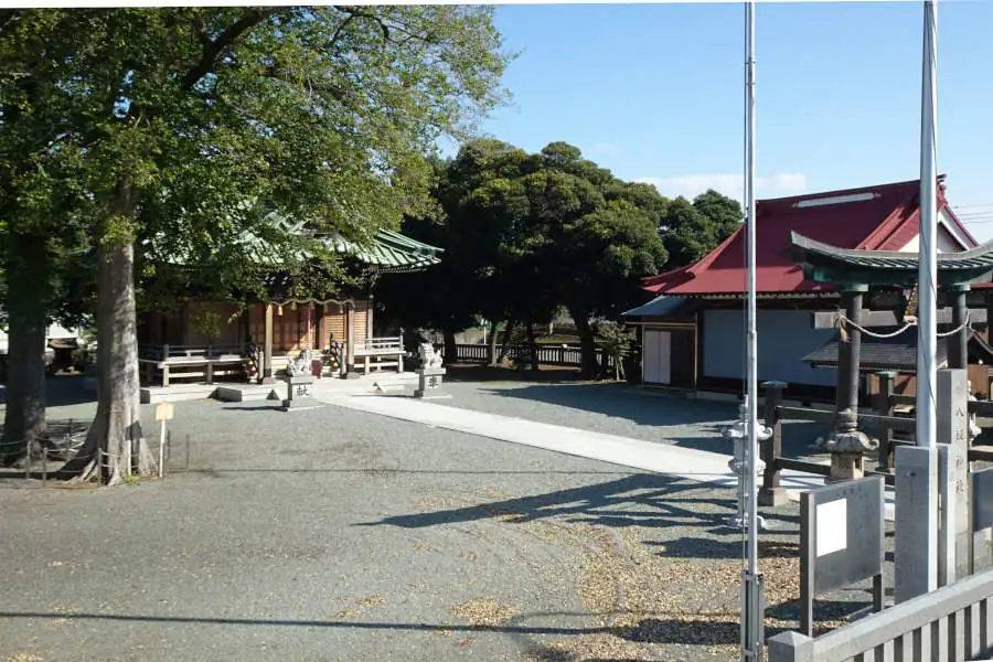 近くには用田寒川社があります。用田の地名は寒川神社の御用田に由来しているようです。ここもまた寒川神社の分霊を勧請した神社ですがご祭神は寒川比女命ではなく誉田別命(応神天皇)、勘定を行った地元氏族(伊東氏)の信仰の関係があったようです。