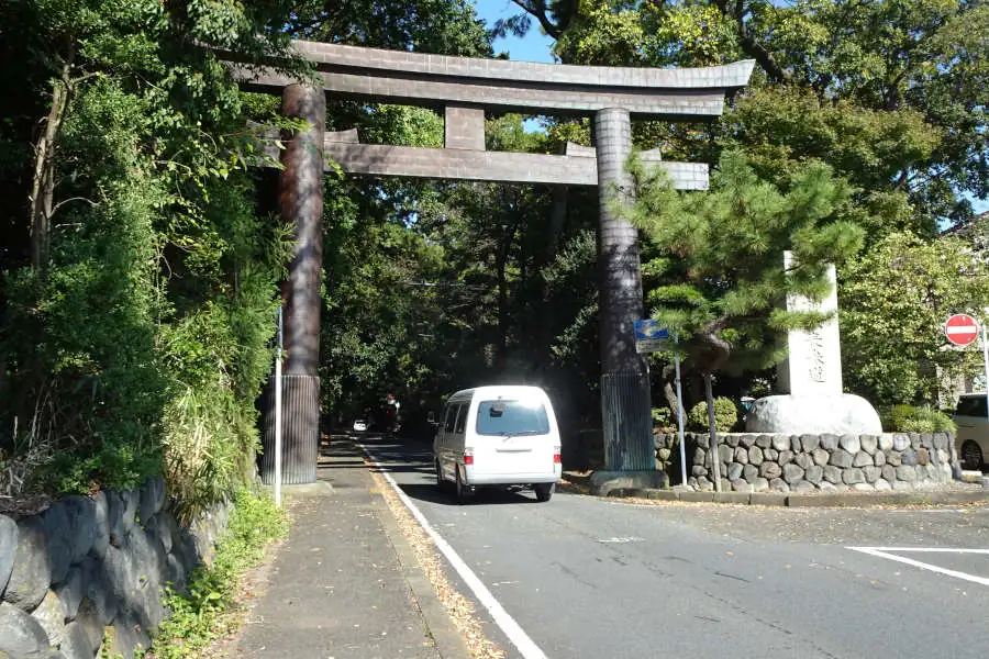 圏央道の高架橋を超えしばらく歩くと寒川神社の一ノ鳥居です。寒川神社は相模国の一之宮神社、お正月は初詣で賑わうところです。一の鳥居から神社までは1kmほどの道程があるようです。