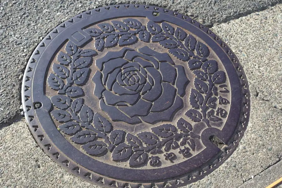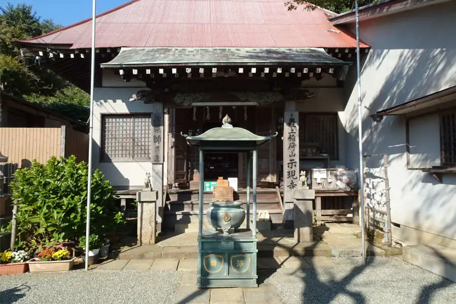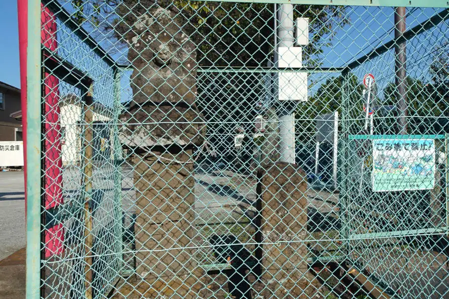 示現寺に立ち寄ったのち新幹線の高架橋を越えます。さらにしばらく歩くと御嶽神社、金網に囲まれた不動明王の石柱があります。やがて県道42号線を越えると道の名は新春日通と変わります。