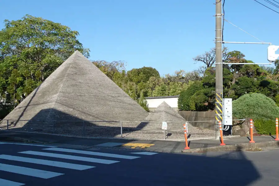 しばらく歩くと日蓮宗の大法寺、山門の脇には石積みの大小2つのピラミッドが建っていました。「ぴらみ堂」と呼ばれピラミッド型の納骨堂と言います。