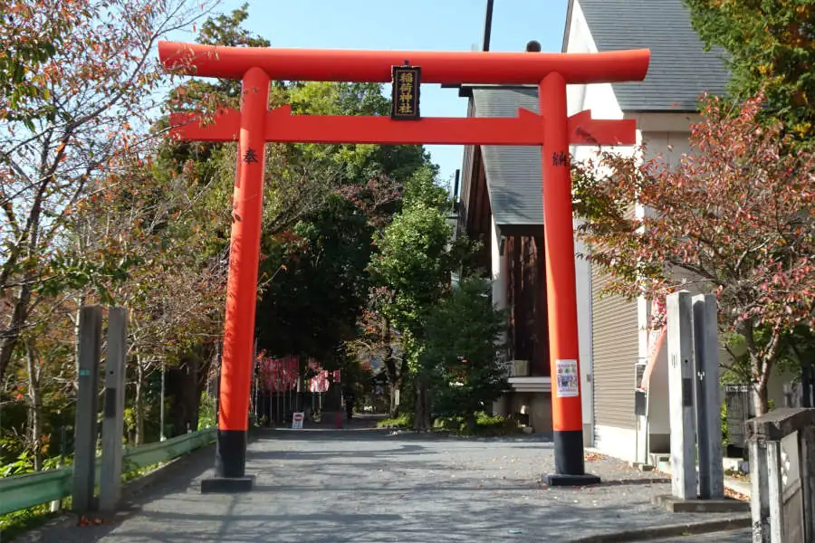 創建年月は不詳ですが、江戸時代後期の地誌「新編武蔵風土記稿」に「稲荷社」と記述されています。東ヶ谷戸の鎮守で、祭神は宇迦之御魂之神、建速素戔男尊、玉祖命です。もと禅林寺の西南にあったのを明治三十九年にこの地へ移し、平成二年に拝殿覆殿等を大改築しました。