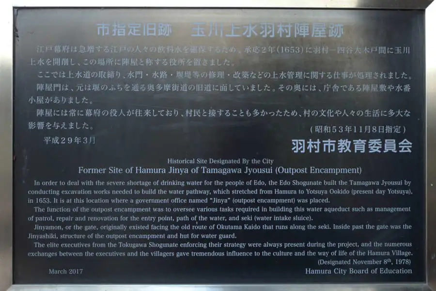 玉川上水築造に尽力した玉川庄右衛門・玉川清右衛門が取水口の守護神として創建しました。