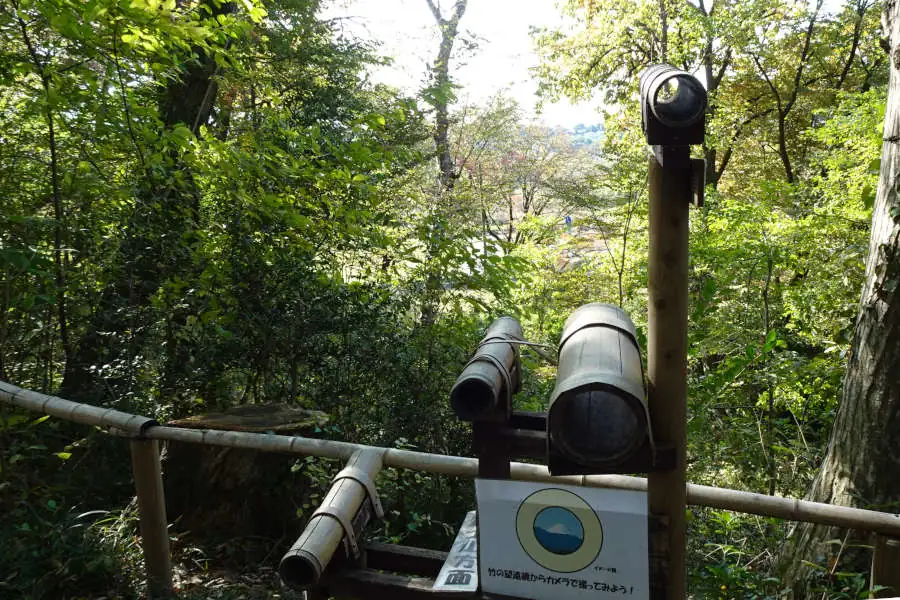 暫く歩くと右手に小さな小山、富士山が見える丘と名付けられているようです。木立の先に富士山が見えるようで「富士山が見えたら鐘を1回・・」と書かれています。ここから富士山までは68km、陣馬山の肩の先に富士山が見えるようです。幸せの鐘が近くにありましたが曇りがちの空からは富士山を見付けることはできませんでした。