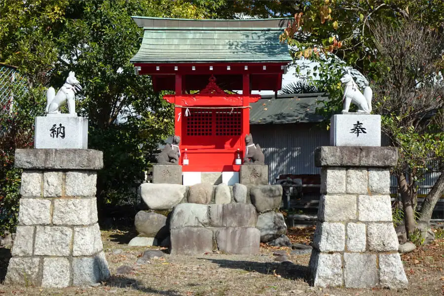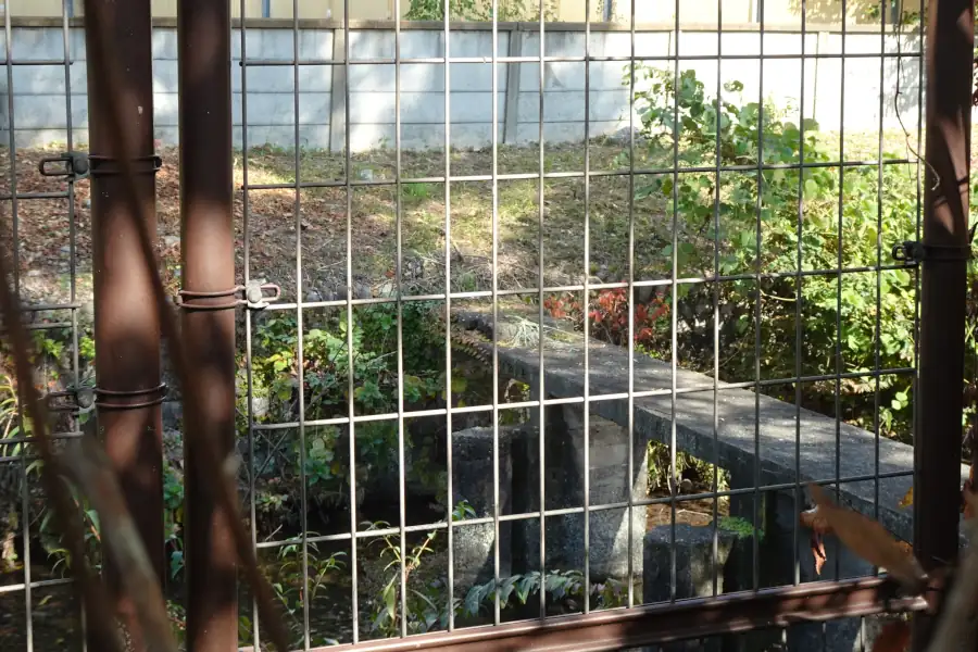 熊川分水の小さな道標に導かれ細い路地を入ると熊牛稲荷、その裏の金網の中に熊川分水の取水口がありました。気が付かなければ通り過ぎてしまうところです。